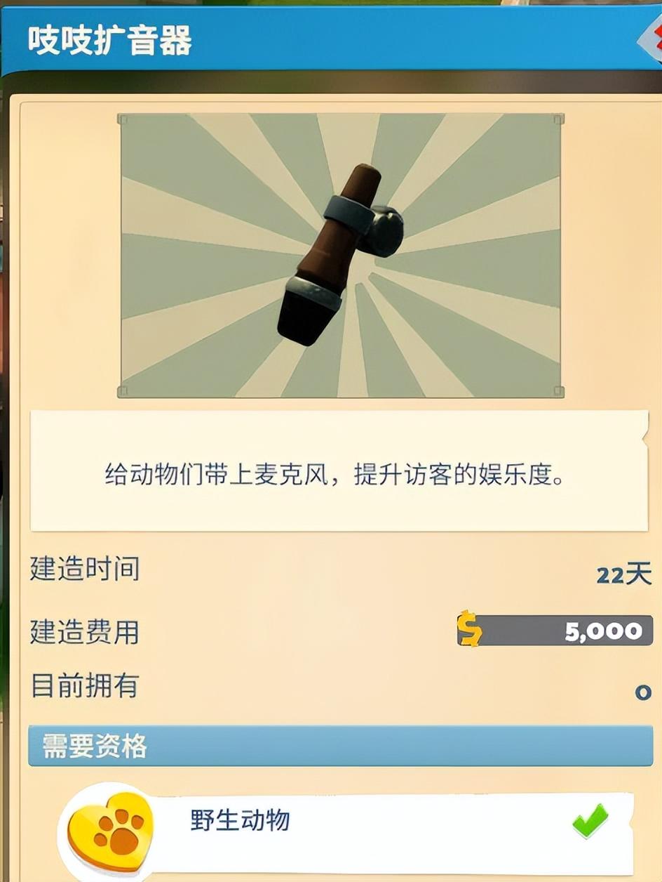 給小型動物準備的生態箱可用來存放諸如蛇、蜥蜴這樣的爬行類生物,定位類似於常規展品,當然,藉由安裝這次DLC更新的一些專屬功能模塊,也可以打造出一些符合玩家喜好和需求的“多功能生態箱”,比如通過安裝“擴音器”,進而提高訪客的娛樂度等等……