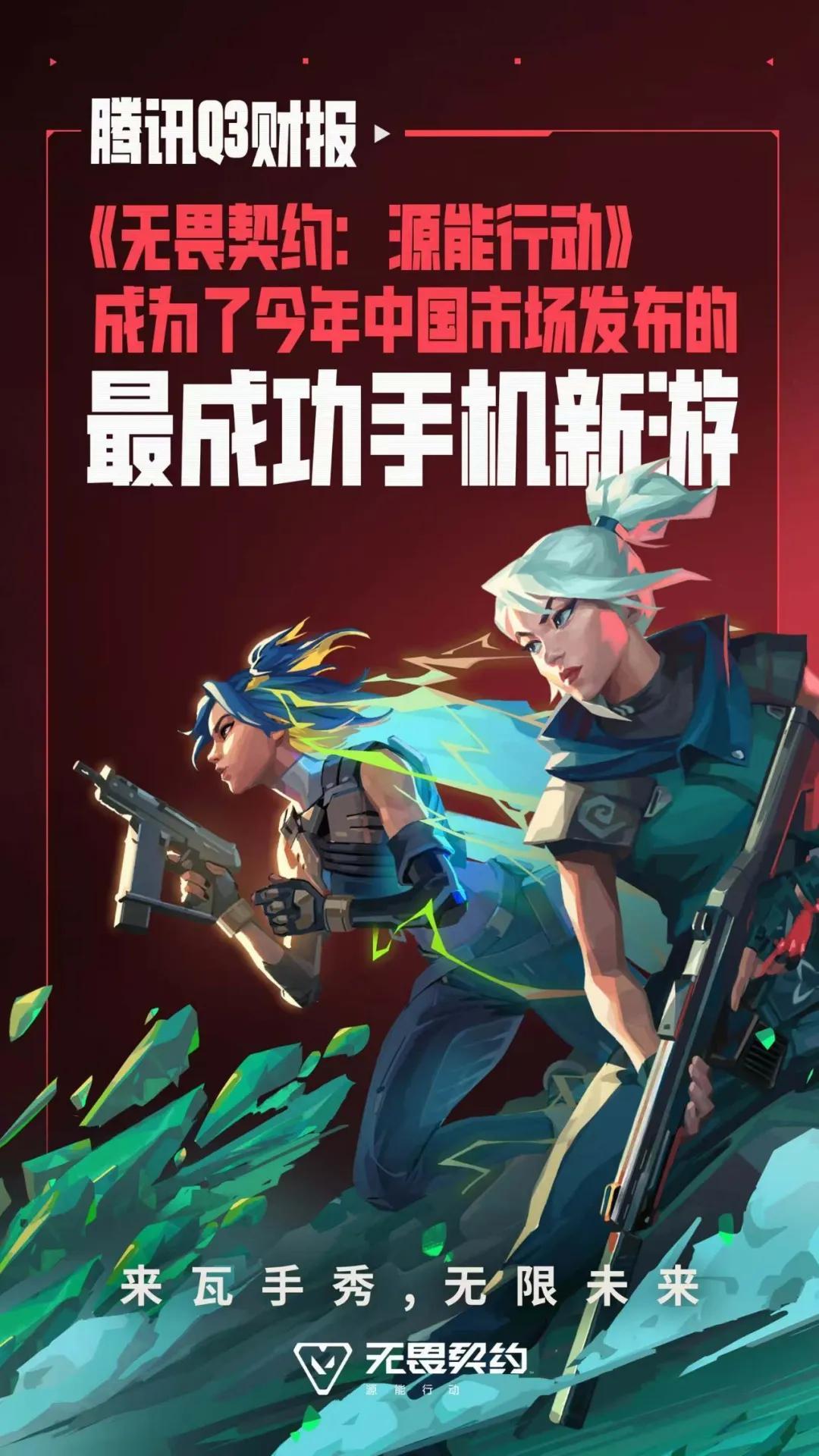 隨後,《無畏契約手遊》用不到4個月的時間便累計獲得全網7000萬預約,上線後僅用2個月的時間便助力《無畏契約》端、手遊月活總數突破5000萬大關。而在騰訊不久前發佈的Q3財報中,也特別提及《無畏契約手遊》,並稱其爲“今年中國市場發佈的最成功手機新遊”。