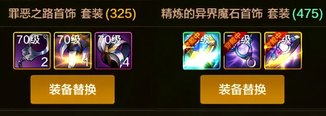 “防具部位”推薦「真學套或鎮魂曲」,“首飾部位”推薦「罪惡套、巨魂套、精煉套」,“特殊部位”推薦「黃金盃、魚雕套」!