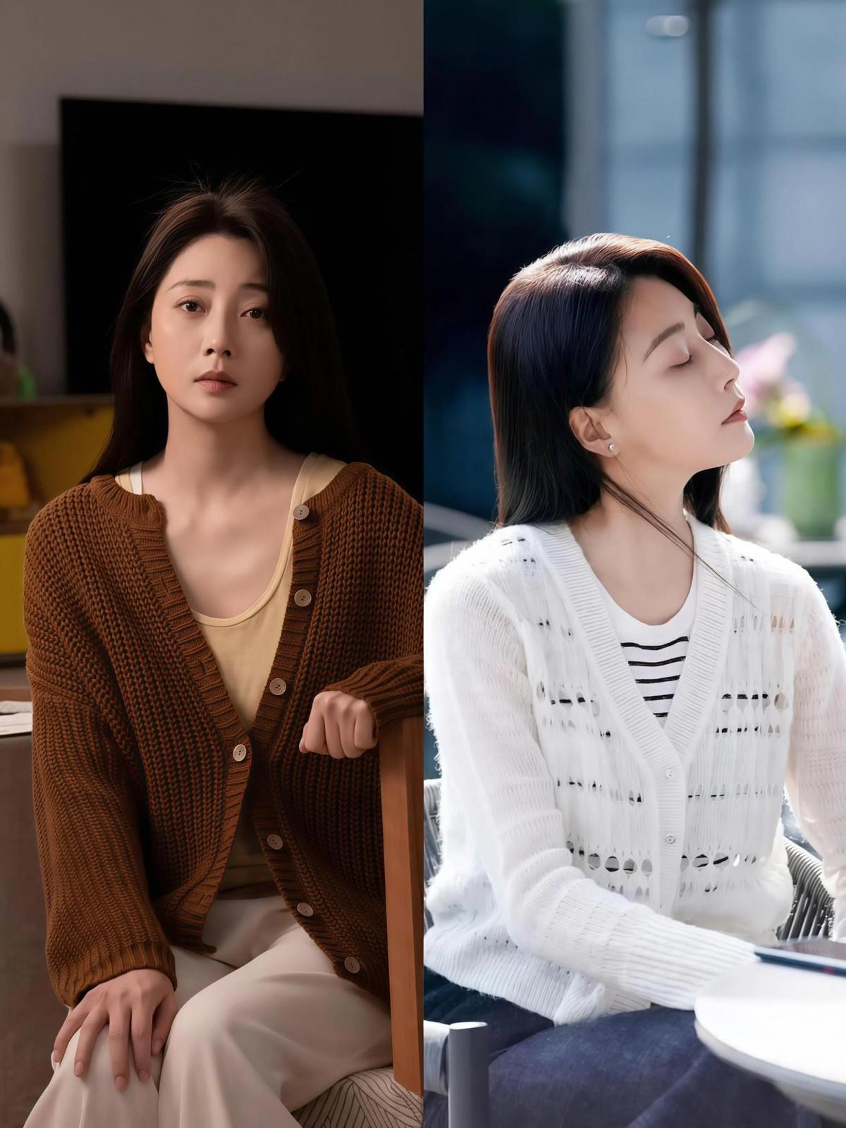 看上去平平無奇的針織衫,沒想到穿在殷桃身上,居然如此有女人味兒。寬鬆的版型舒適慵懶,內搭低領T恤,簡約大氣,顯得脖子纖細又修長,隨便套件闊腿褲,也好有氛圍感。