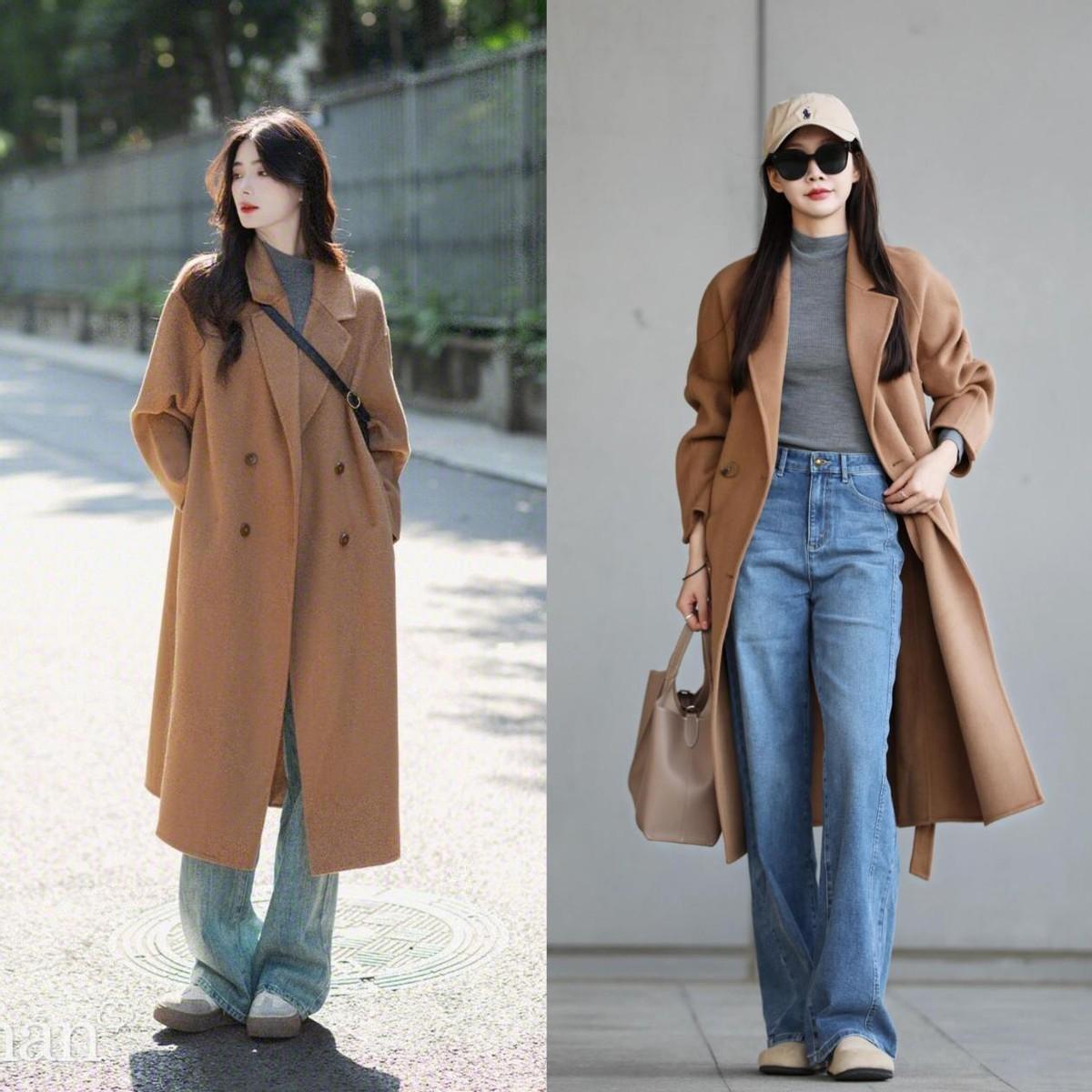 棕色大衣配牛仔褲,經典穿搭永不過時