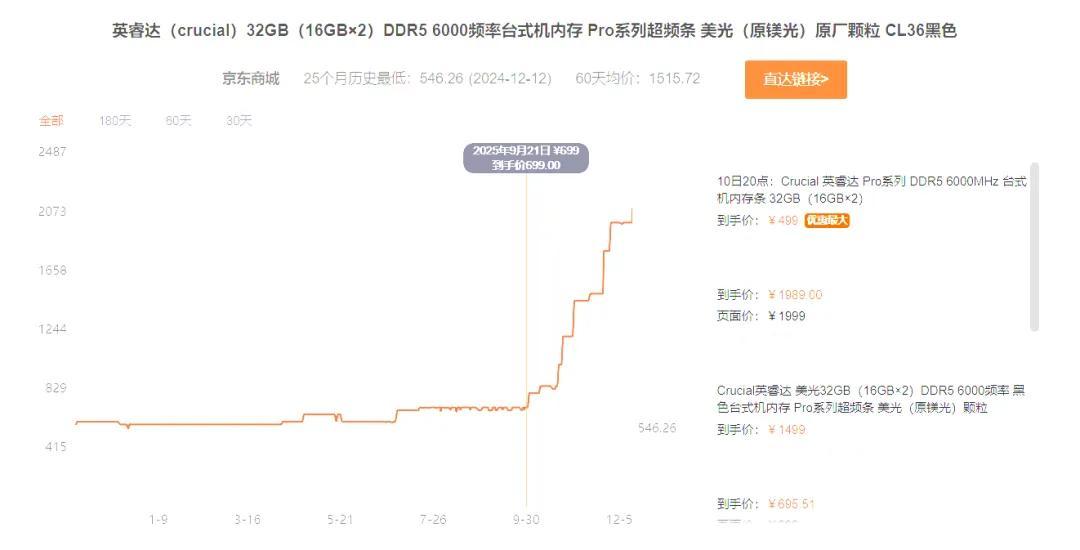 供需失衡直接點燃漲價潮,中小供應商擔心未來拿不到供貨,於是開始在現貨市場積極“搶購”,導致價格飆升的同時現貨進一步減少。如此循環下來,消費級的內存和固態價格暴漲,不少產品還出現了缺貨情況。9月以來,華強北市場甚至出現 “上午一個價、下午一個價” 的瘋狂場景,內存條從裝機配件變成了 “理財神器”。