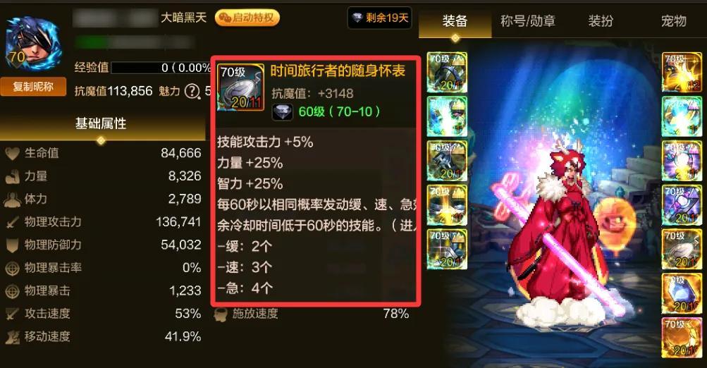 所以甚至可以用“懷錶左槽+諸神2件套”,這樣既有冷卻刷新、又有技攻加成!