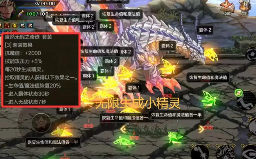亮點:每20秒生成1個精靈(回血/霸體/無敵),並且不見起來的話它會一直存在,而且就算你掛了都能繼續生成精靈!