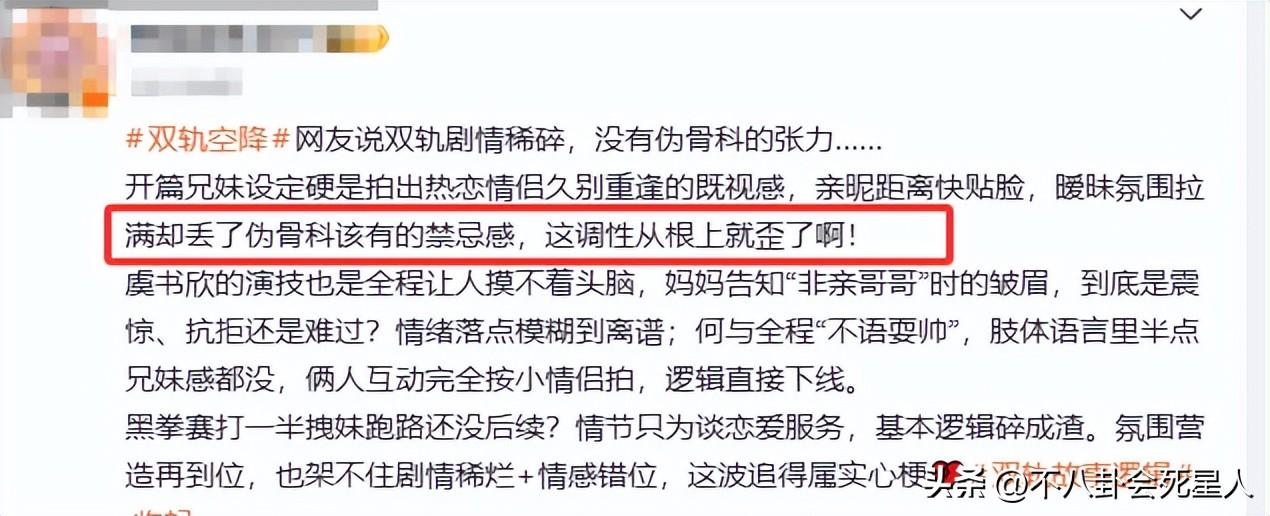 網友們也是對劇情的邏輯混亂表示了不滿,坦言丟失了僞骨科的禁忌感,從調性上就錯了。
