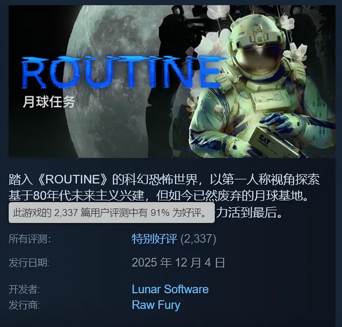 我最近還通關了一個叫《月球任務》的恐怖遊戲,屬於恐怖遊戲裏少見的“細糠”,環境渲染、音效、謎題以及劇本都可圈可點,放在最近幾年的恐怖遊戲裏屬於完成度極高的一作。