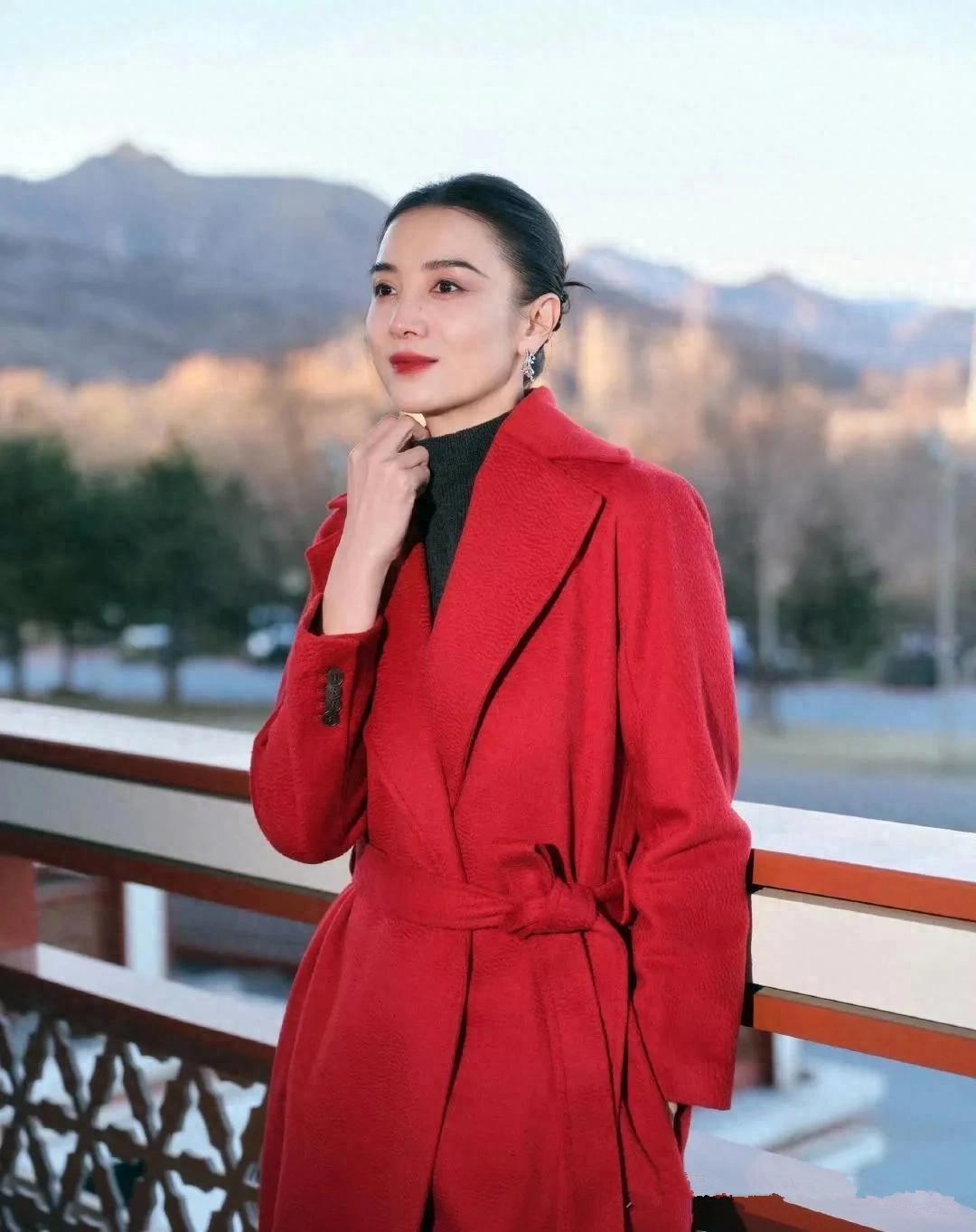 作爲實力派演員,宋佳可是妥妥的“氣質女神”。她的大衣穿搭也很有參考性,喜歡穿紅色大衣的女人,建議選擇繫帶款,內搭黑色半高領打底衫,把頭髮盤起來,優雅而又大氣,頗有一副“國泰民安”的既視感。