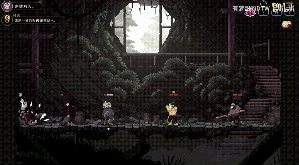 遊戲中出場的敵人也是各個身懷絕技、難以硬拼,而主角僅僅3點的初始血量和稀少的回血道具則誘導着玩家“無傷過關”,盡全力磨練自己的技術。