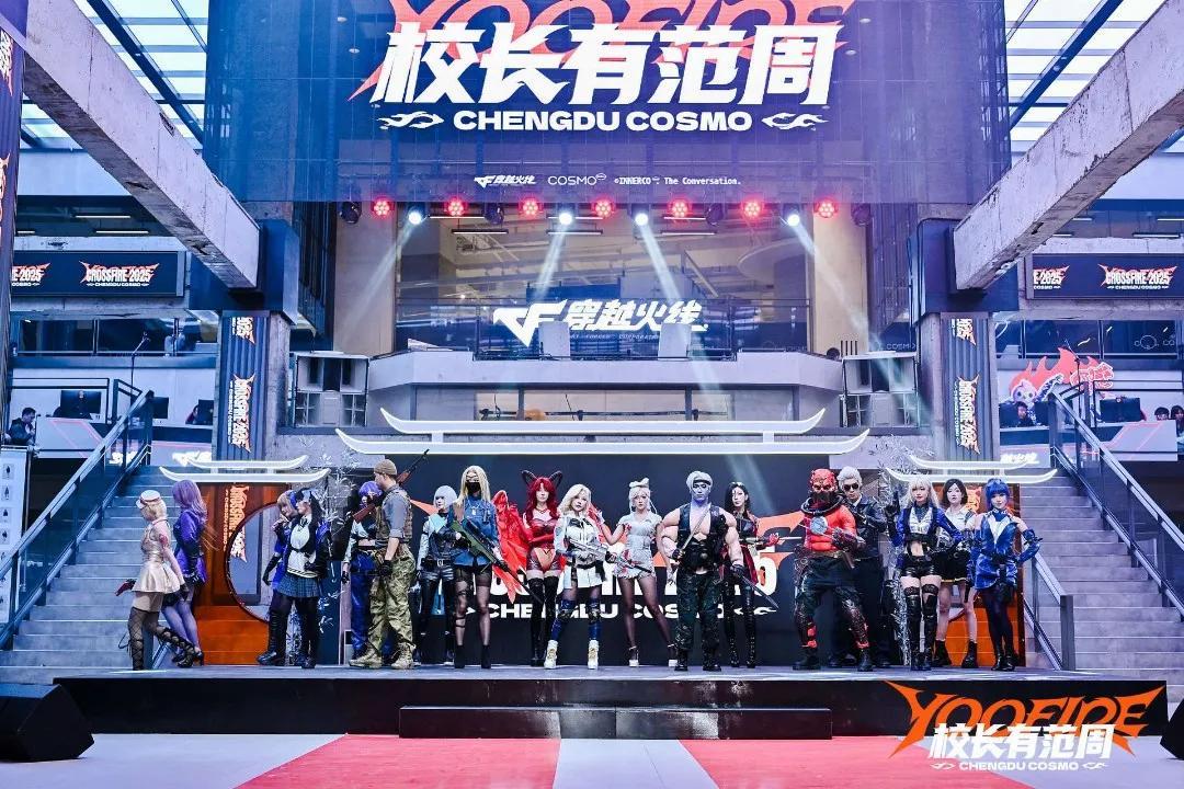 光看“校長有範周”這個名字,乍一聽像某個學校的校長見面日。但事實上,它是一個以CF玩家(自稱“CF校長”)爲核心的潮流文化活動,在一個星期的時間裏,涵蓋了Cosplay走秀T臺、全城打卡聯動和電競賽事等多個維度的玩法。