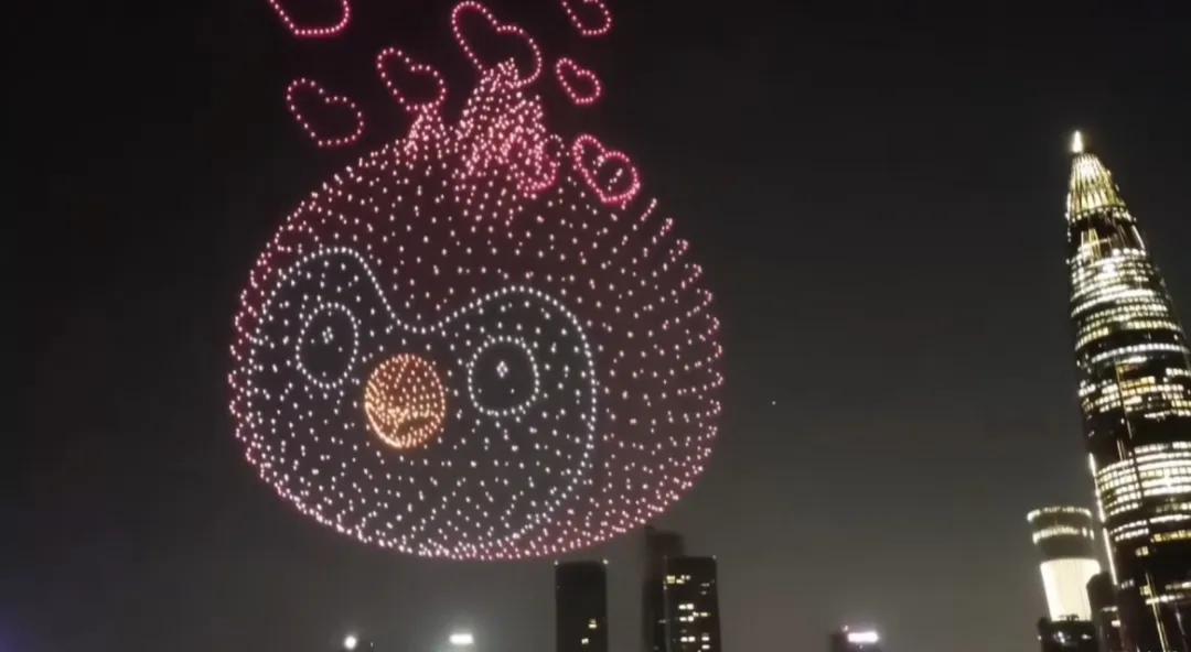 幾個月前的深圳活動上,無人機表演除了遊戲LOGO等重要標誌外,也還原了鳥頭這個“民選表情包”的呆萌表情。