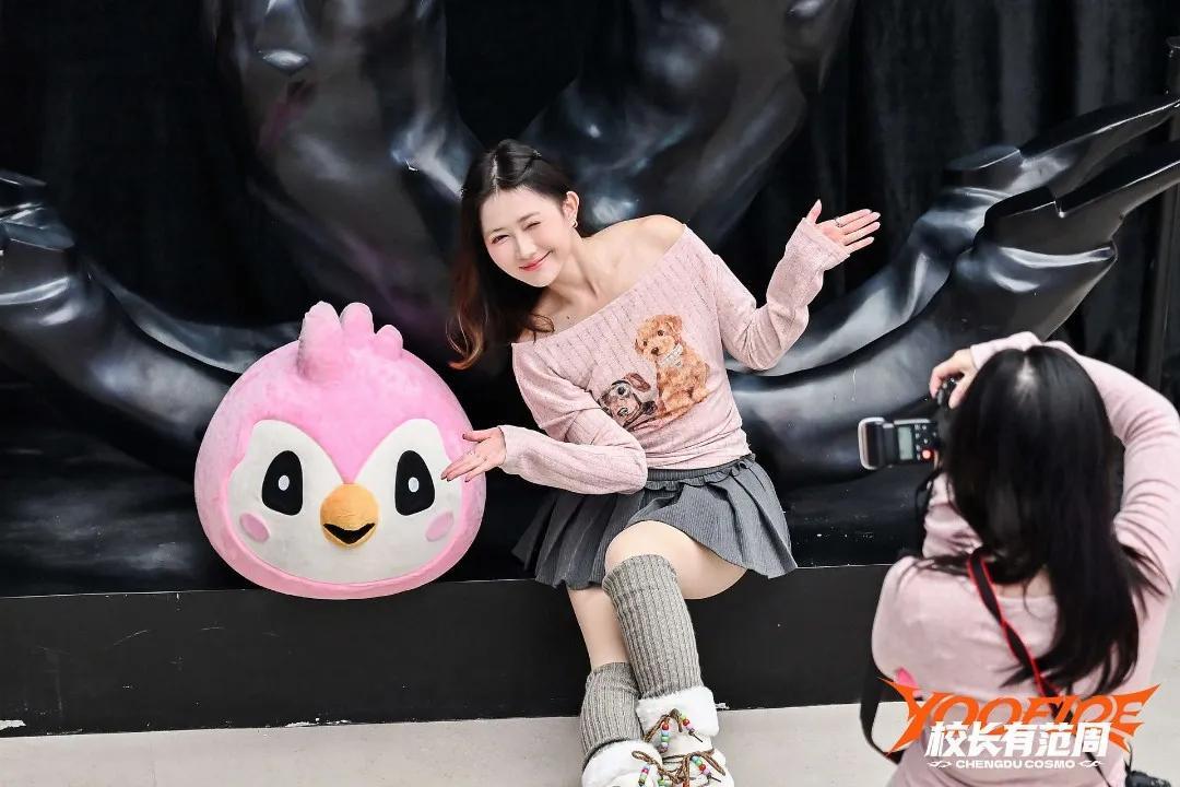 這次的成都活動裏,成都全城的11個點位都安排了“找鳥頭”的尋寶互動,玩家通過NFC小程序線下打卡領取的校長勳章超過8.4萬個;玩家見面會現場會贈送鳥頭抱枕,我參加的那處現場,也有扮成巨型鳥頭公仔的工作人員互動。