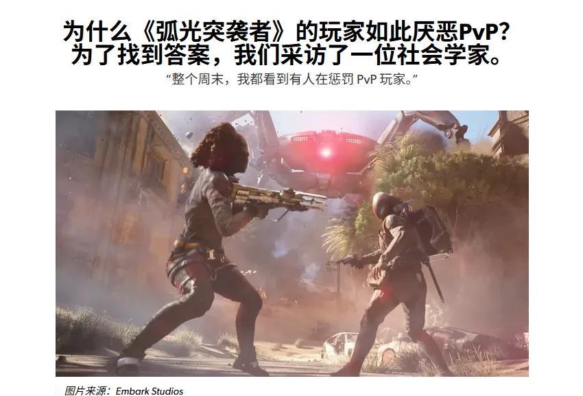 那是歐美玩家天生更喜歡這種與人“勾心鬥角”的PVP嗎?也不是,上個月國外遊戲媒體Eurogamer在專門搞了個“爲什麼ARC玩家如此厭惡PVP,爲找到答案,我們採訪了一位社會學家”這樣的選題: