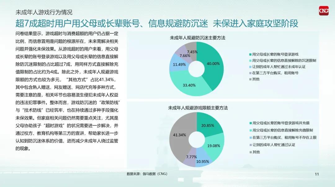問題同樣清晰地暴露出來:在仍然存在超時遊戲行爲的未成年人中,有73.4%是通過使用家長賬號或身份信息的方式,繞開了防沉迷限制。