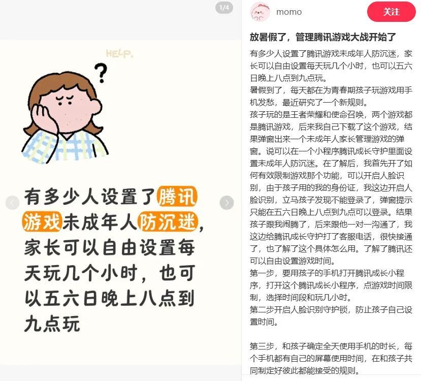 騰訊遊戲就是一個非常典型的例子,除了在遊戲內要求實名認證、人臉識別,旗下成長守護平臺在遊戲外有一套面向家長免費開放的未保功能,可以讓家長自主完成未成年人遊戲時長、消費的基礎限制。