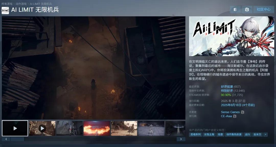 《無限機兵》如今在Steam擁有超過1.3萬條評價