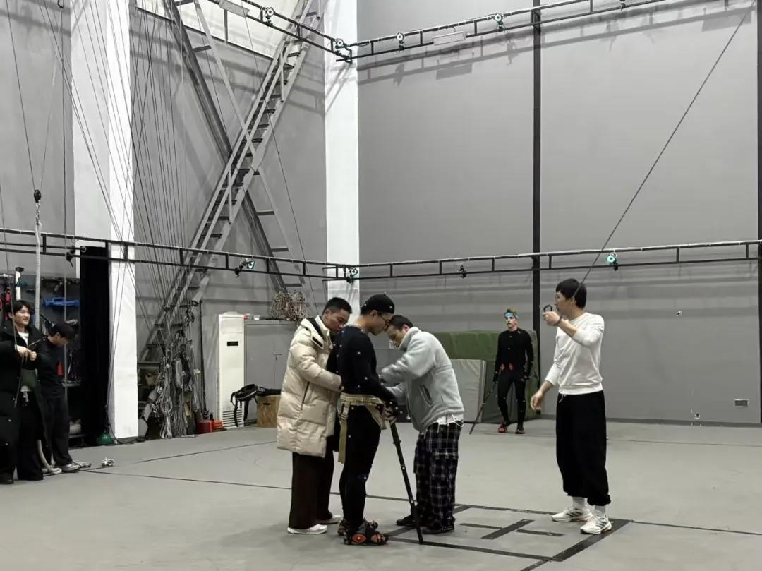 比如大師兄被吊在半空中的動作,其實也是通過動捕完成的,我們用威亞將武術老師懸空,兩名工作人員通過滑輪控制威亞的移動軌跡,武術老師在空中順着位移完成揮舞動作,採集完成後,再由動畫團隊在此基礎上進行誇張和非人化處理。