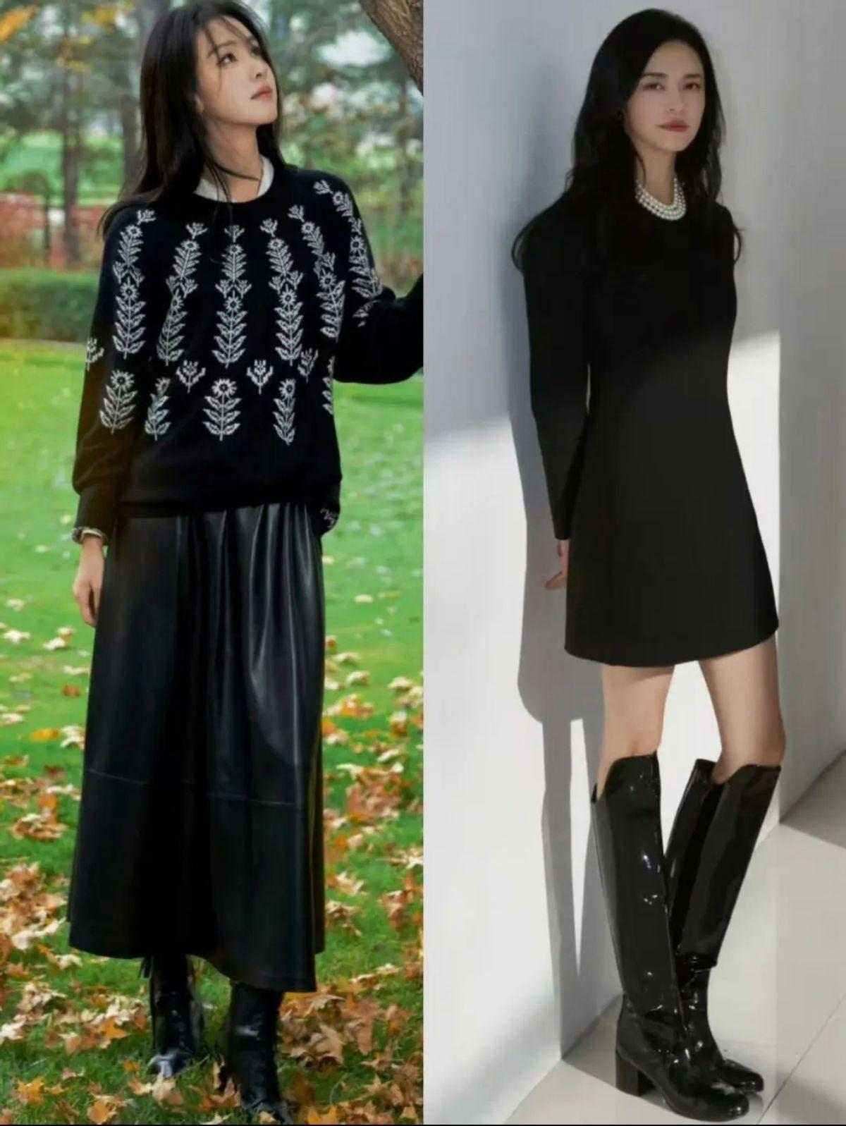冬日的魅力,就是能夠體現出個人穿衣功底,不輕易被約束。像劉詩詩的冬日穿搭,充滿着無限的可能性,一襲黑色長裙,把靴子藏進裙襬當中,浪漫且時髦,超有冬日氛圍感。