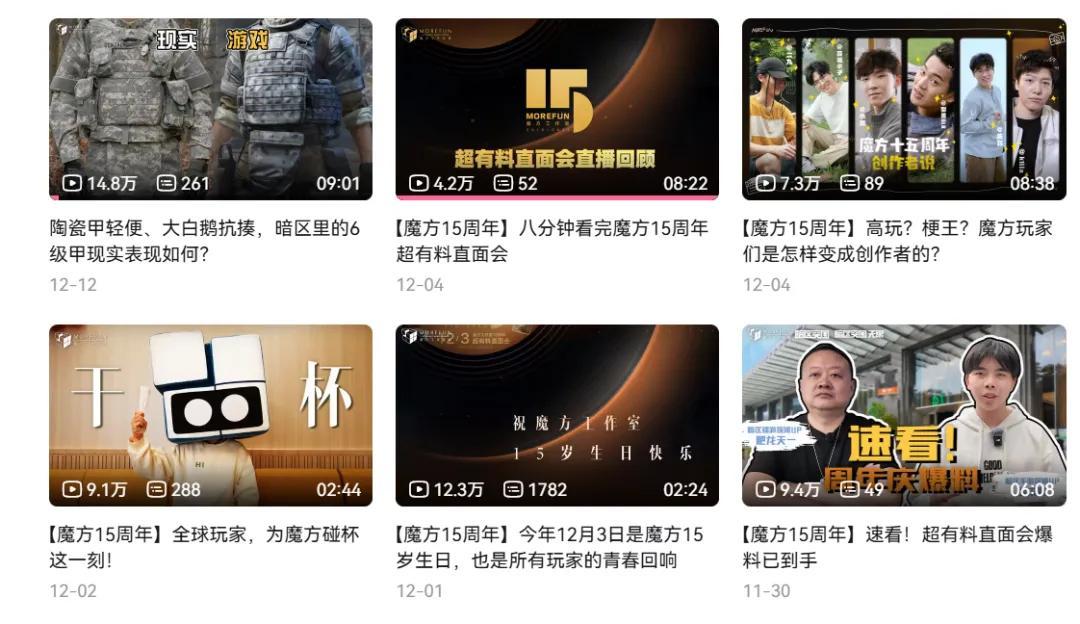 此外,魔方工作室的官方賬號也以親民和藍V歷險記的形象對外展現,成爲騰訊遊戲第一個在B站突破百萬粉絲的廠牌賬號,在各大平臺萬千官號中脫穎而出。