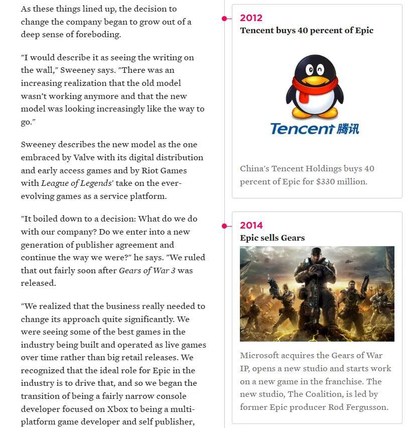 在Polygon的這次採訪裏,Tim Sweeney明確將騰訊的投資視作Epic的歷史轉折點