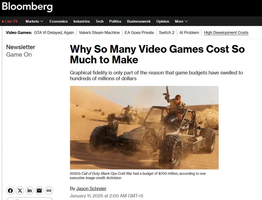 彭博社Jason老師今年又寫了篇雄文:《爲什麼許多遊戲成本過高》(他基本年年提成本話題)