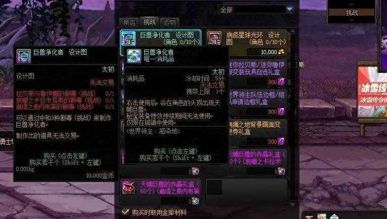 首先說一下“獲取途徑”,在世界領主副本的專屬商店中,有一個道具“巨獸淨化者 設計圖”!