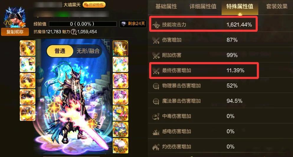如果遇見一位玩家,既有1500%以上的技能攻擊力,又有11.39%最終傷害,那麼他就算目前遊戲中最頂尖的一批玩家了!
