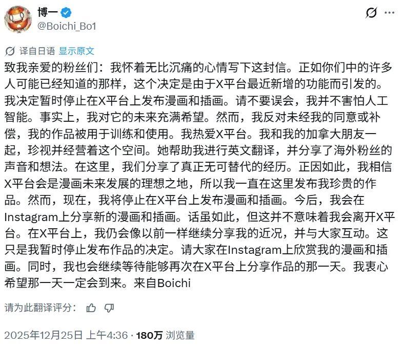 這其中也包括爲《石紀元》作畫的漫畫家Boichi,雖然運營X賬號花了他和朋友不少心血,但未來自己的作品更新會繞過X,以後X只會用來發一些日常互動。