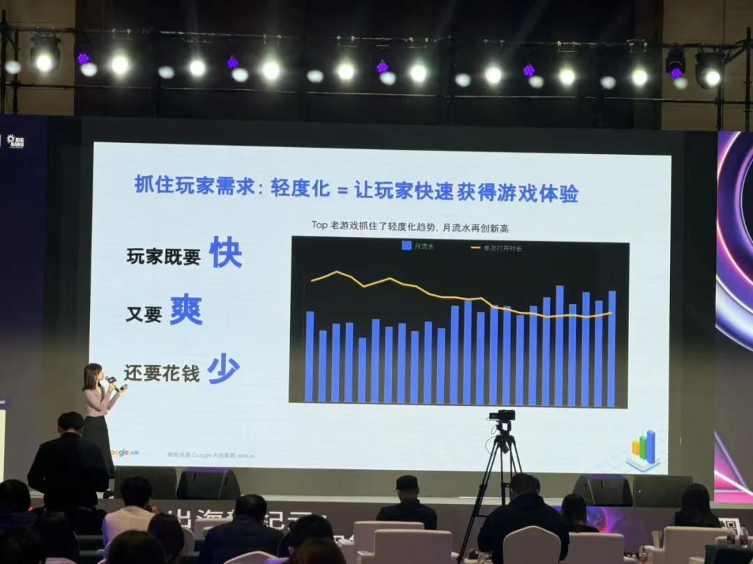她先指出用戶側的變化:玩家時間更碎片化、單次遊玩更短,注意力更難抓;同時內購增長放緩,輕度化趨勢更明顯。基於這些變化,Google把出海常見的三種變現模式——內購、廣告、混合變現——分別拆解出影響收入的關鍵因素,並把落點放在投放提效上:用App Campaign等更自動化的廣告工具,按不同增長階段的目標去匹配投放策略,減少人工反覆調參,把團隊精力更多留給產品與內容運營。