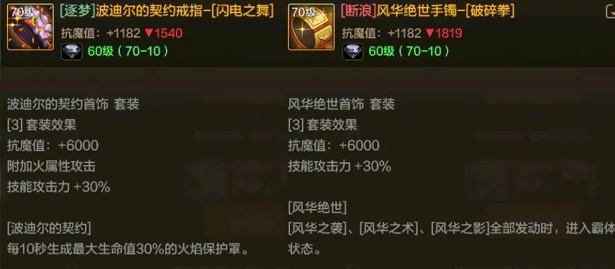 這2套裝備的增傷詞條都一樣,“風華”主打霸體三速,“契約套”主打護盾,相對更受歡迎。