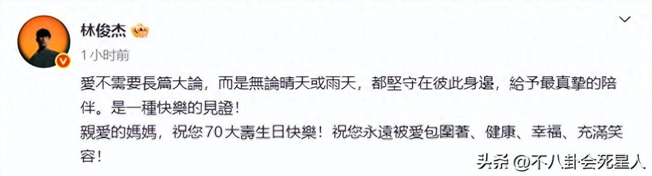 顯然,這是林俊杰借母親70歲生日之際,官宣自己的正牌女友。