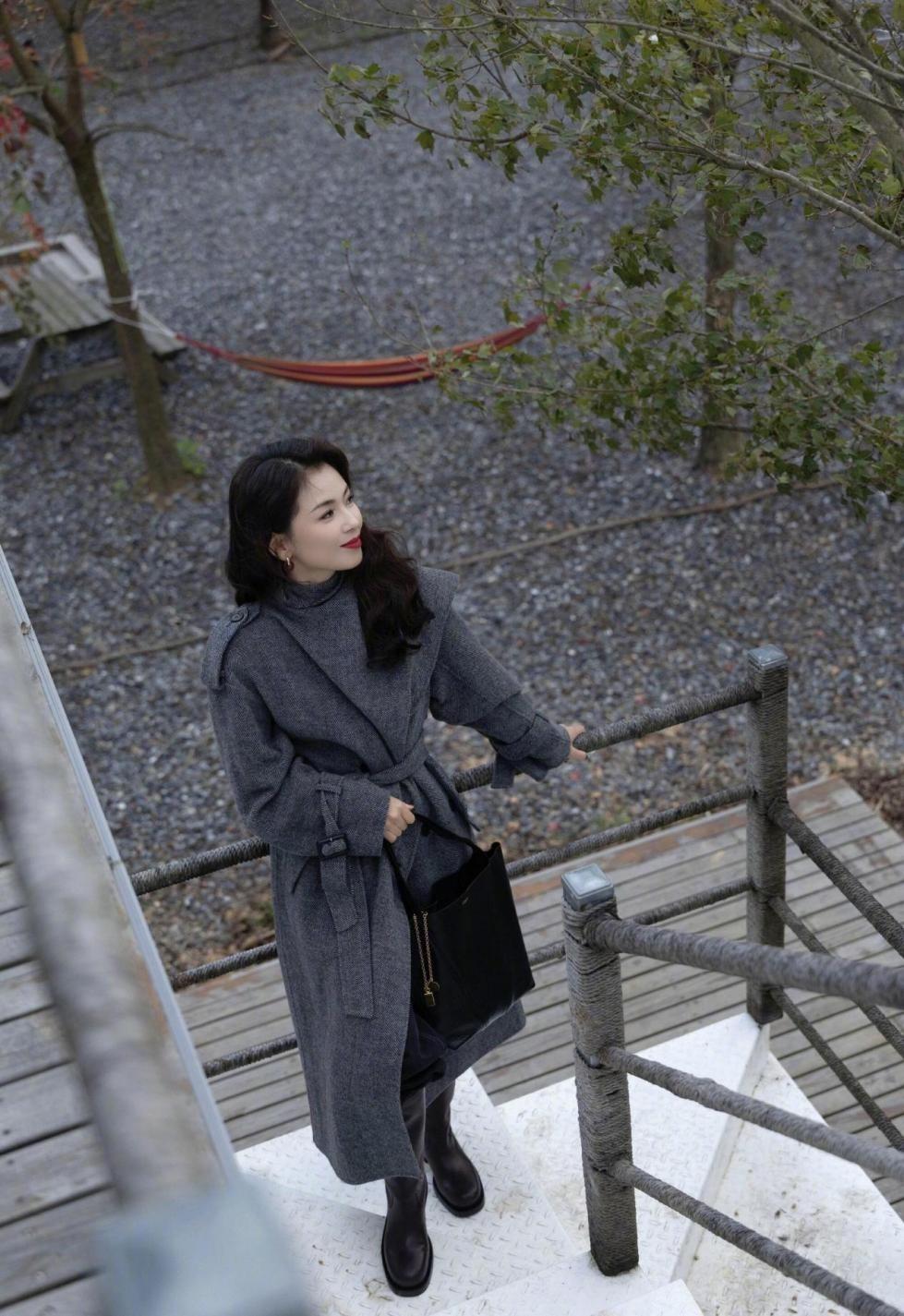 灰色大衣常穿常新,跟基礎款比起來頗有高級感。像劉濤身上穿的這件超有設計感的圍巾式大衣,領子立起來之後,不僅很保暖,還可以修飾頭肩比例,再將腰帶系起來穿,又能立刻削弱臃腫感,有種剋制之美。