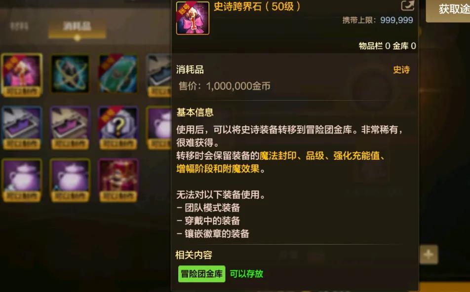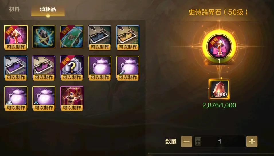 直接跨界70級史詩肯定是不划算的,主要跨界石粒子也沒有這麼豐裕,因此這裏推薦的是“50級史詩跨界石”!