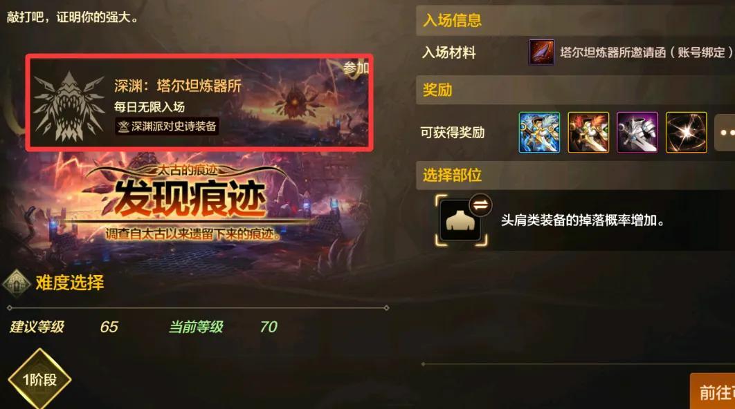 當然如果還差很多件特性詞條,建議先去“塔爾坦煉器所”清空一輪深淵票再說!
