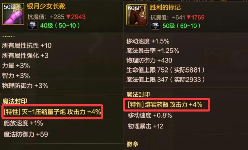 如果穿戴“鎮魂曲系列”的話,那麼最理想模板之一就是“特化45”,儘可能堆疊45技能的攻擊力,而這時候就需要洗魔法封印的“特性詞條”了!