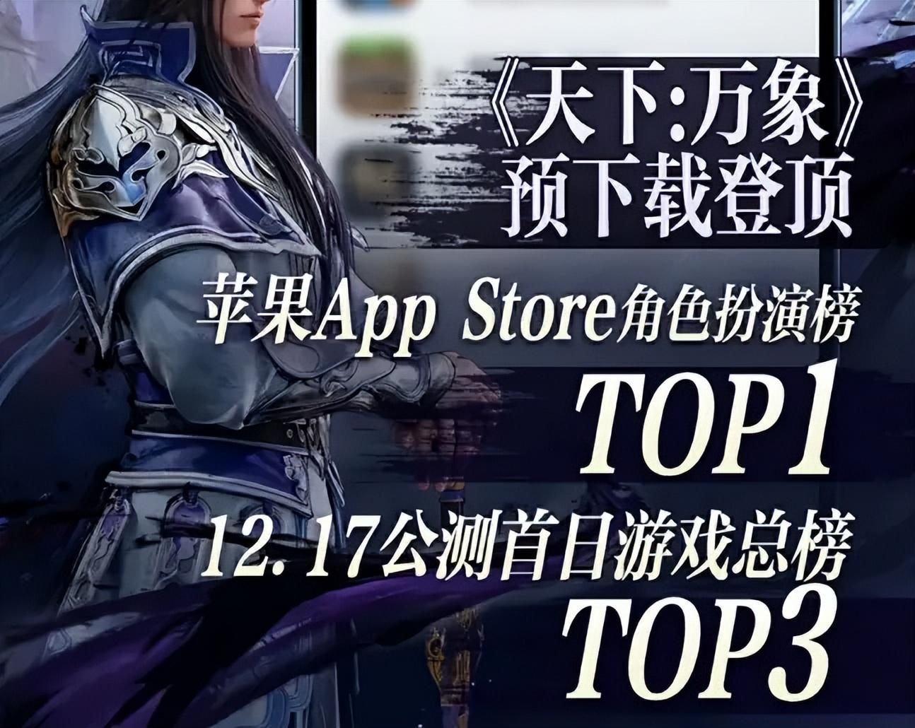 而在12月16日,當三端互通,將《天下貳》《天下3》以及諸多賽事服重新整合升級的全新遊戲《天下:萬象》正式開放預下載後,也迅速登頂了蘋果APP Store角色扮演遊戲榜榜首的位置;另外在公測當天,也成功登上了免費遊戲總榜Top3。