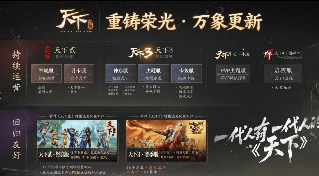 《天下》選擇了一條相對更慢、也更難的路——承認市場和玩家的主流喜好不再是MMO,但它不再試圖回到“所有人都在”的巔峯時刻,而是努力讓仍然留下來的老玩家,玩得更久、也玩得更安心。