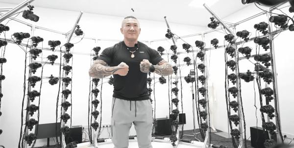 直播時,館長先是進入了工作室的3D模型掃描以及動捕室內,在216個鏡頭組成的攝像矩陣中給自己做了“全身掃描”: