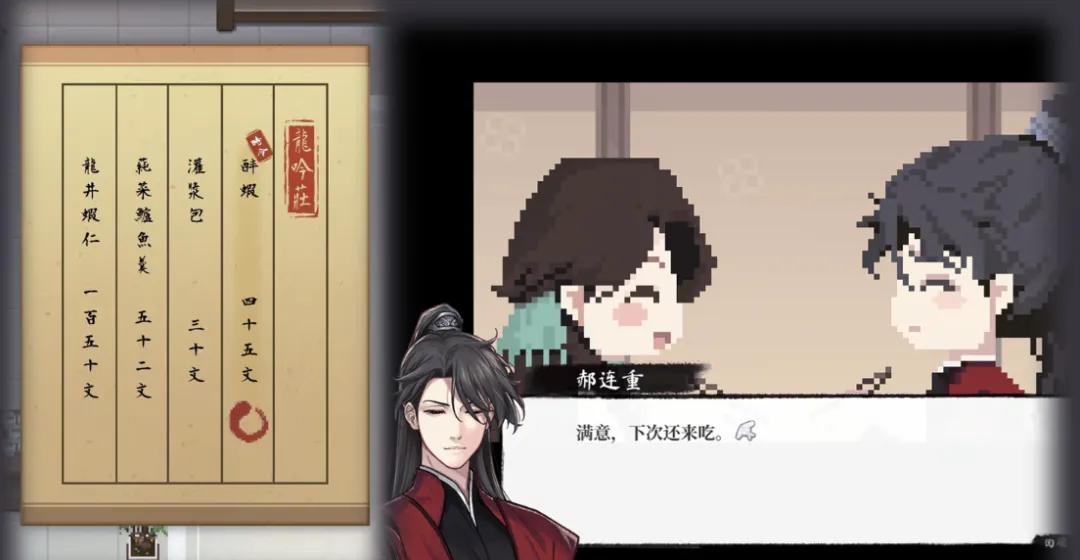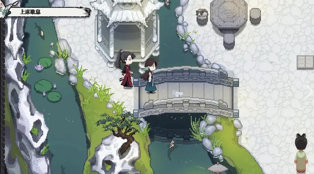 從玩法層面看,《月華》本質還是視覺小說。但和其他乙遊不一樣的是,遊戲中內置了一張像素風的2D地圖,在每一幕的間隙,玩家可以操作角色跑圖。