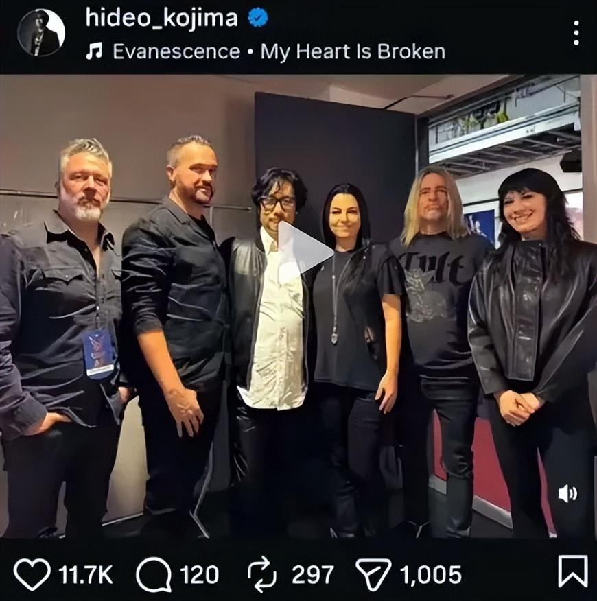 過了一會,他又發了條和搖滾樂隊Evanescence合影的照片,我知道你可能沒聽過這個組合,但不重要,重要的還是配樂,選的是這個樂隊的曲子《我心已碎》(My Heart is Broken)