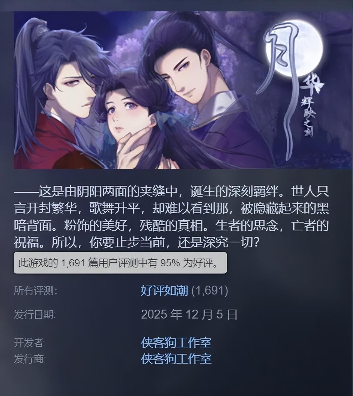 事實上,國乙單機已經很久沒有一部可以稱上“精良”的作品了,這也是爲什麼發售不到一個月就,《月華》就在Steam獲得了上千條評價,95%的好評。