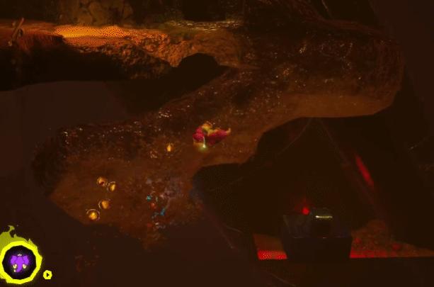 但在《咚奇剛:蕉力全開》中,有一張地圖名爲“掩埋場的地層”。進入這張地圖後,角色上下左右全方位都是泥土,土裏預先埋好了寶藏、敵人,還有一些交互裝置,但玩家並不知道它們的方向和位置,眼前的世界一切都是未知的。