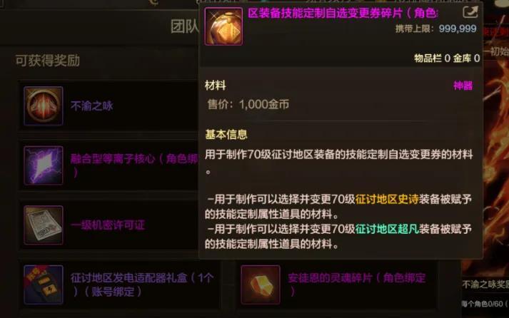 這個碎片就厲害了,可以製作“定製技能變更券”,2個碎片=1個史詩變更券,3個碎片=1個超凡變更券!
