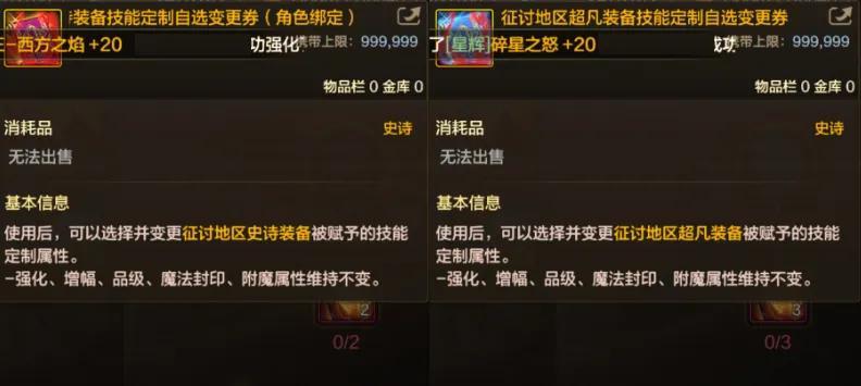 所謂定製技能變更券,就是可以自由選擇征討史詩的前綴詞條,比如“斷浪”“排山”等等,這下子終於減負可以追求“8保1”了!
