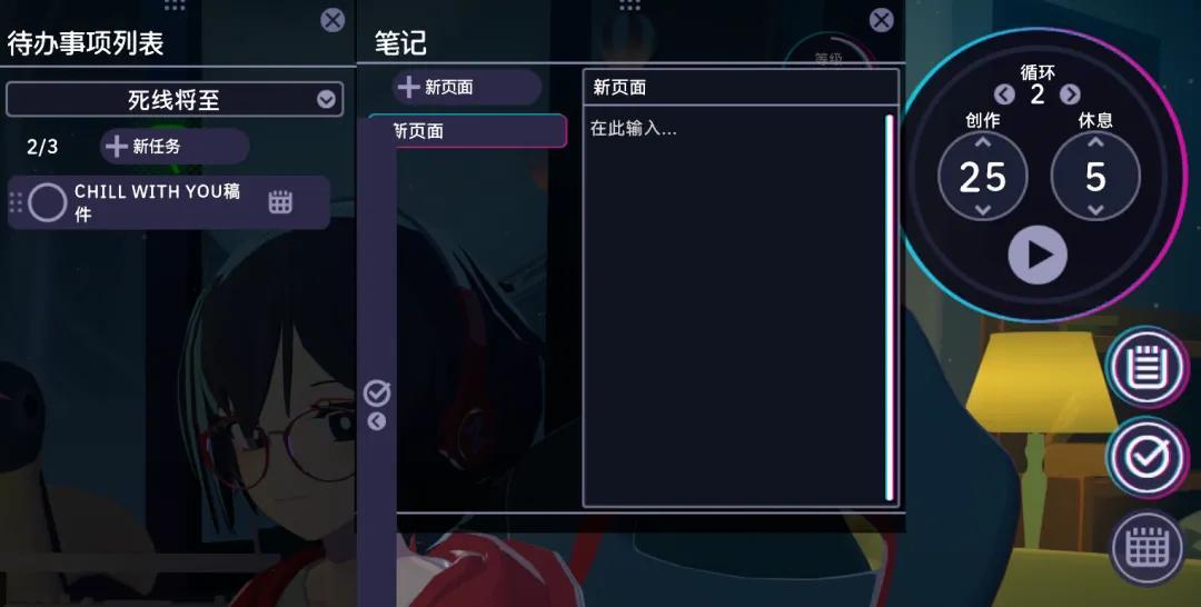 就我自己體驗下來,《放鬆時光》的最佳玩法是把遊戲掛在副屏上,空閒之餘可以扭頭偷看一下身邊的主角,給人的陪伴感反而最爲擬真,很像大家熟悉的“搭子文化”——一個人也許會心不在焉,但如果有人作陪、監督反倒能學得進去。
