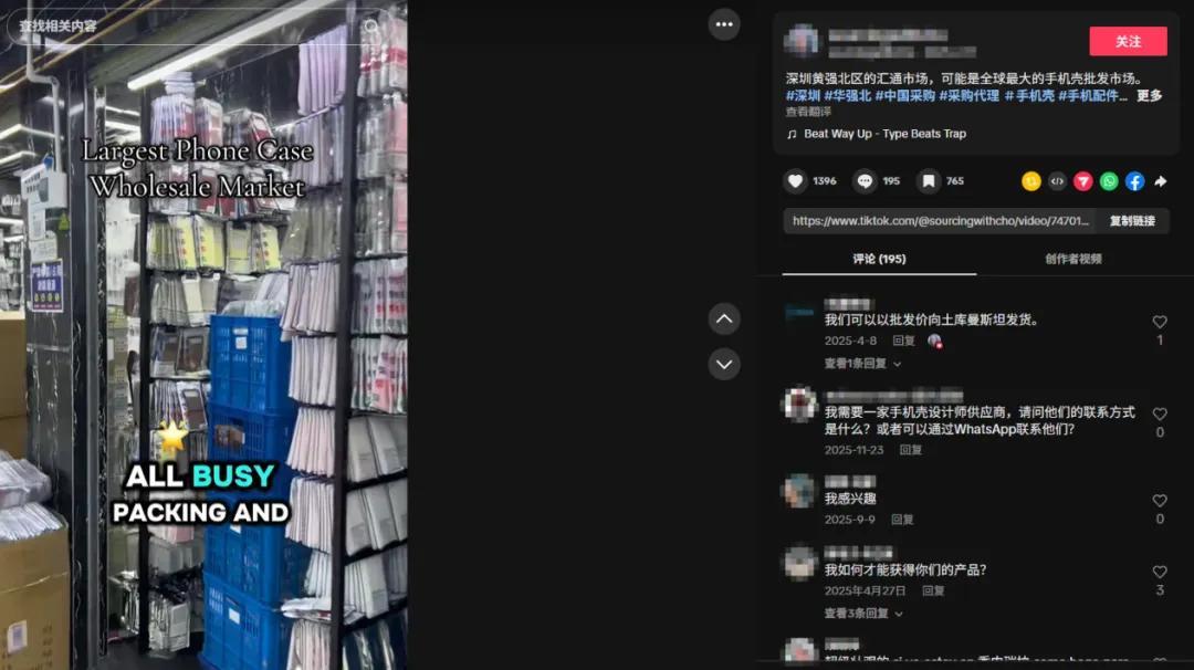 真正能反映華強北真實商貿生態的,反而是TikTok上那些不到半分鐘的“無趣”帶貨視頻:店鋪老闆用不太流利的英文報出產品信息,評論區裏全是“有貨麼?怎麼發?來個價”的直接問詢。