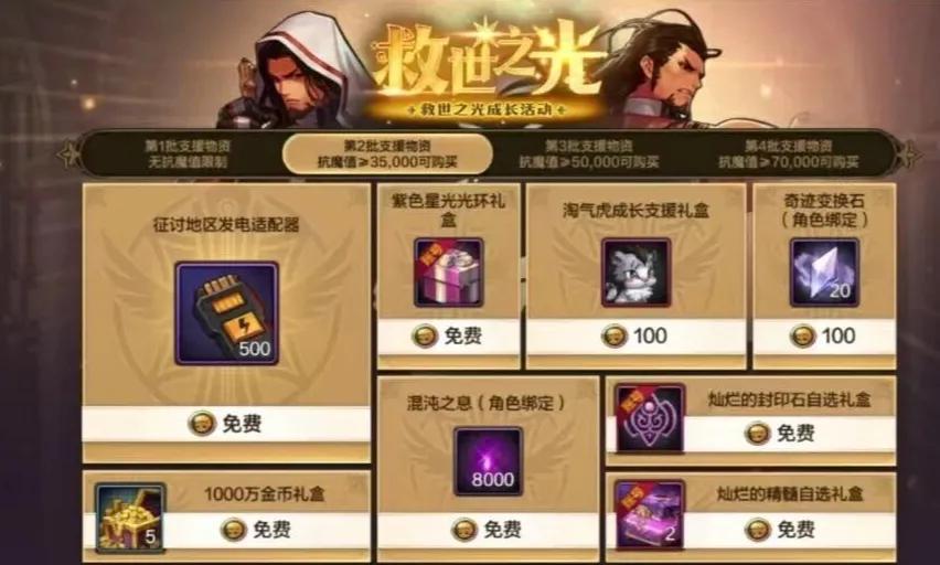 「5萬抗魔值」100個矛盾結晶體、48個紅豆、1萬爐巖炭、500張深淵票、40張領主門票