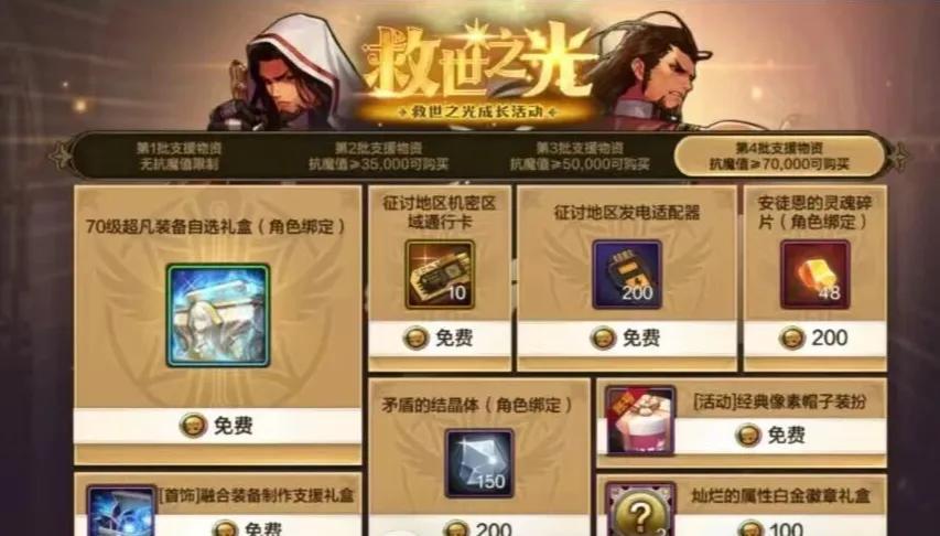 「7萬抗魔值」150個矛盾結晶體、48個紅豆、70A自選超凡、10張特殊門票等