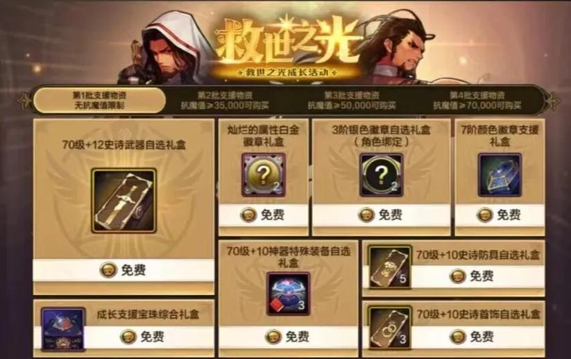 而且需要注意的點在於,本次成長活動中並沒有屬強徽章和升級券(放在氪金禮包中了),如果不打算氪金的話,不管是升級還是打造都有一定難度,還不如直接綁定大號呢!