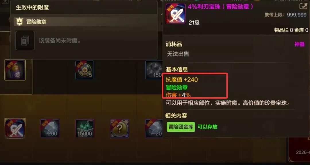 【1】第一個亮點在於,1級可解鎖一顆4%傷害冒險勳章寶珠!