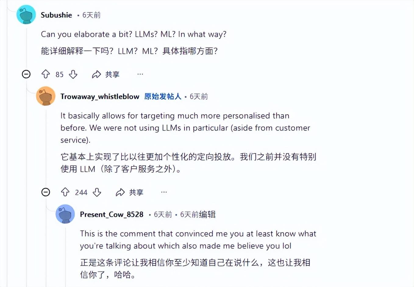 曾一些評論發出質疑,帖主在評論區留下的大部分回覆,文字水平遠遠低於既有情緒又有技術的原帖。